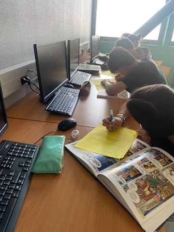 A trois moments de l’année les deux classes se sont retrouvées pour s’affronter dans plusieurs défis littéraires (création d’une première et quatrième de couverture, quiz et time’s up revisité).