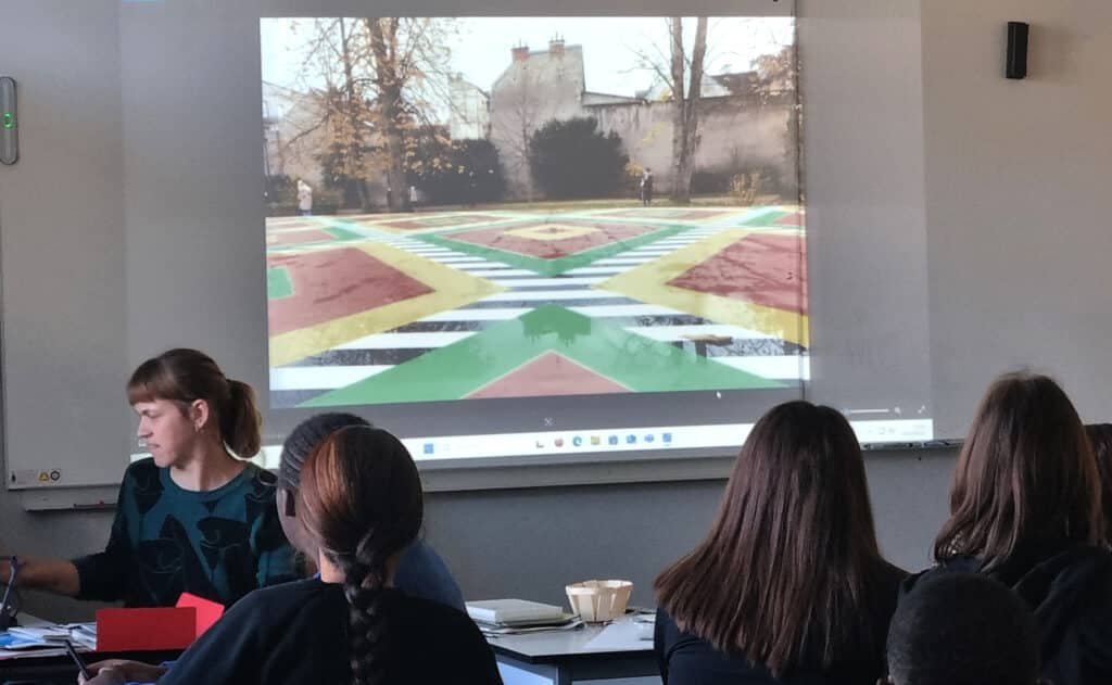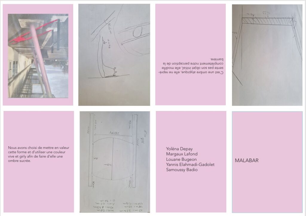 Suite à quoi les différentes peintures in situ imaginées pour le Lycée par chaque groupe d’élèves sont projetées sous forme d’esquisses, schémas et calculs divers.